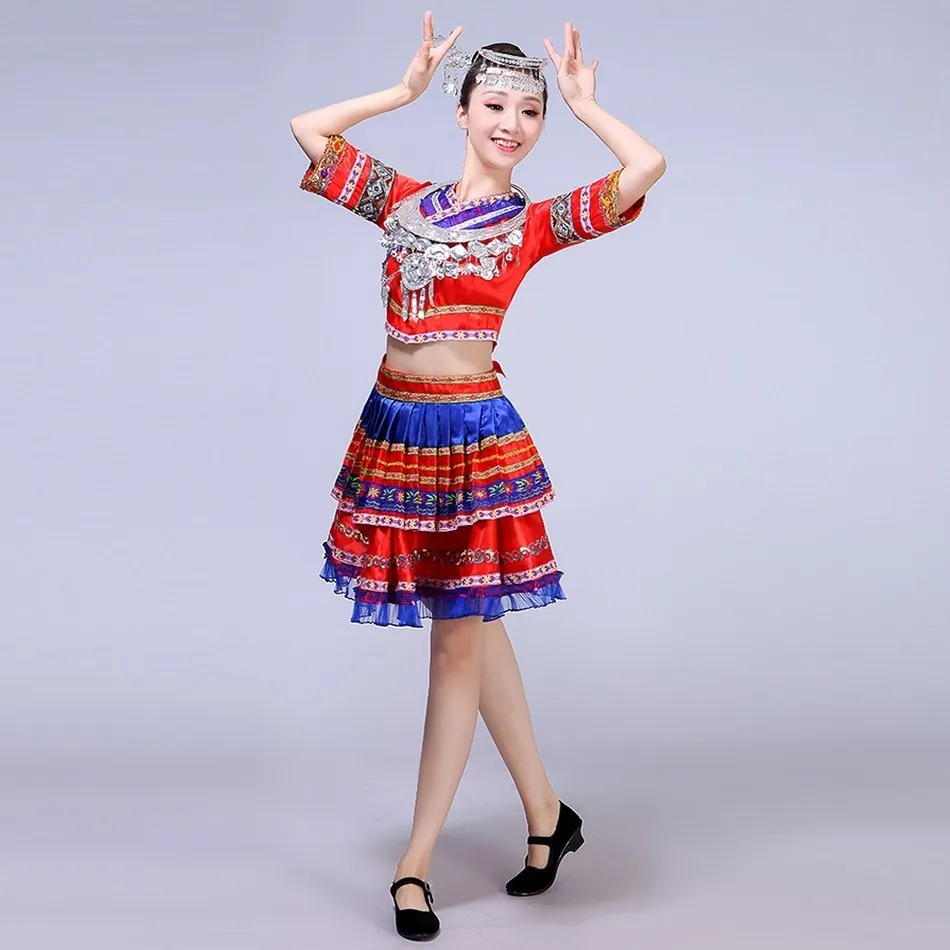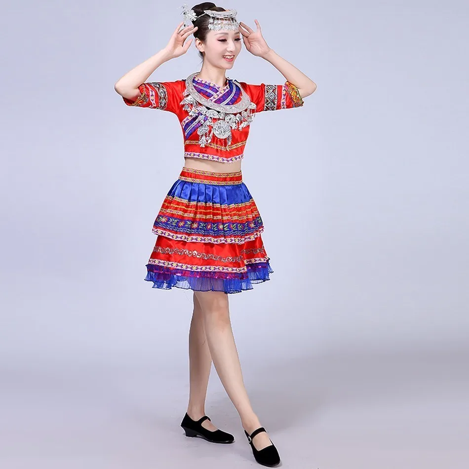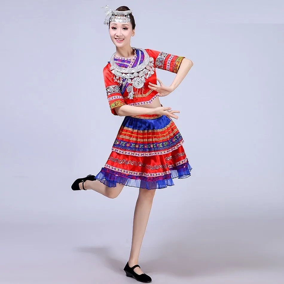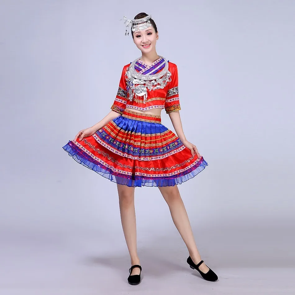 Flash Deal Songyuexia New Pattern Chinese Folk Dance Show Clothing Woman Stage Short Self-cultivation Pleated