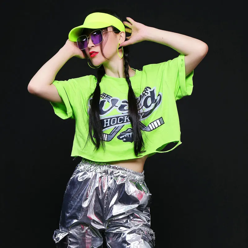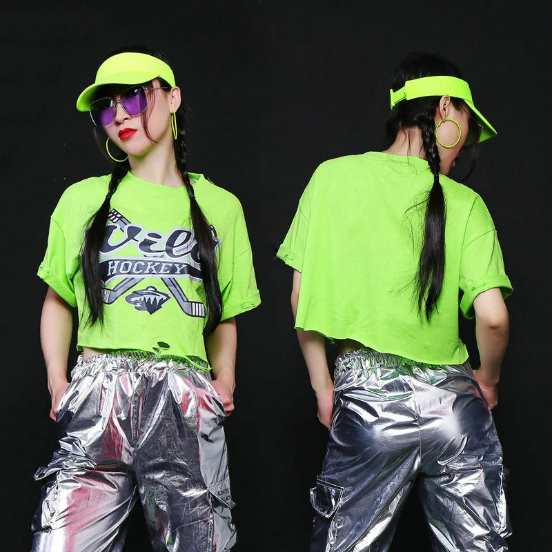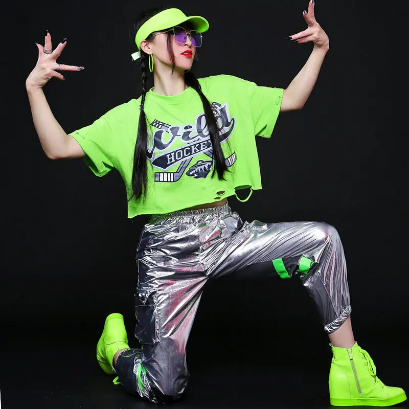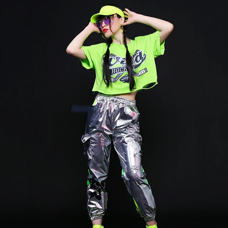 Mega Deal Jazz Dance Costumes Ladies Tops Silver Pants Hip Hop Clothing Street Dancing Outfits Women Cheerlea