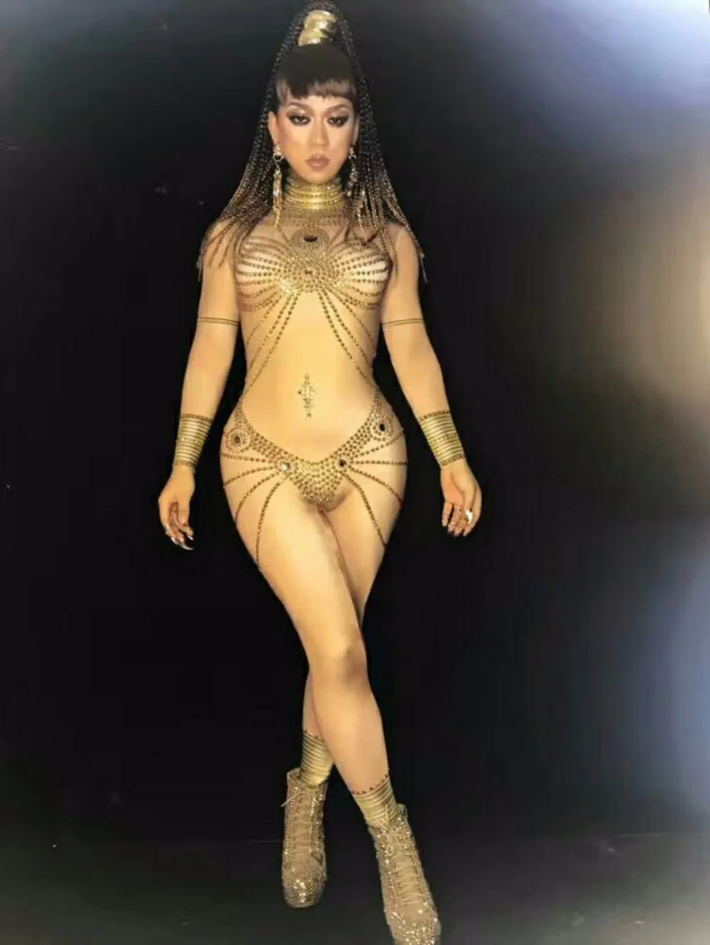 Mega Discount New Arrival Women Sexy Golden nude trousers performance clothing set Nightclub bar singer Dj Ds sta