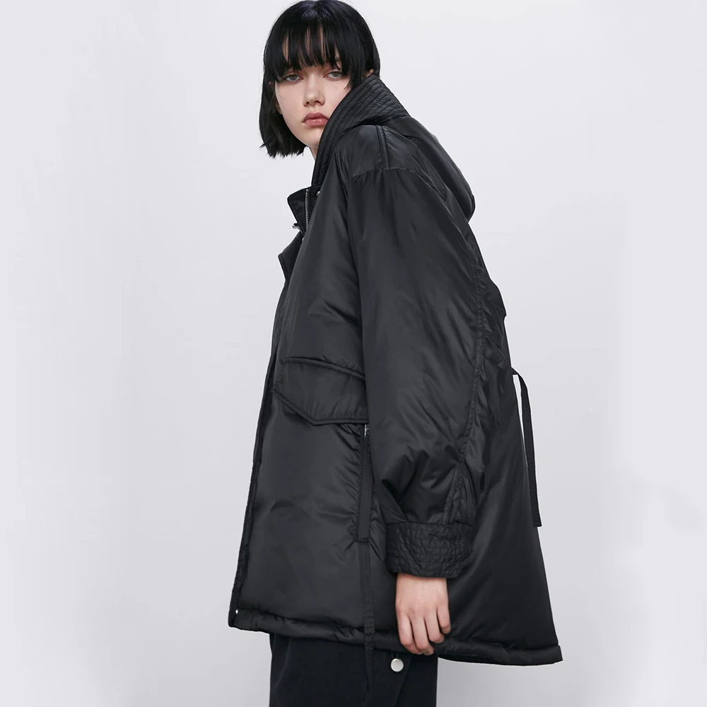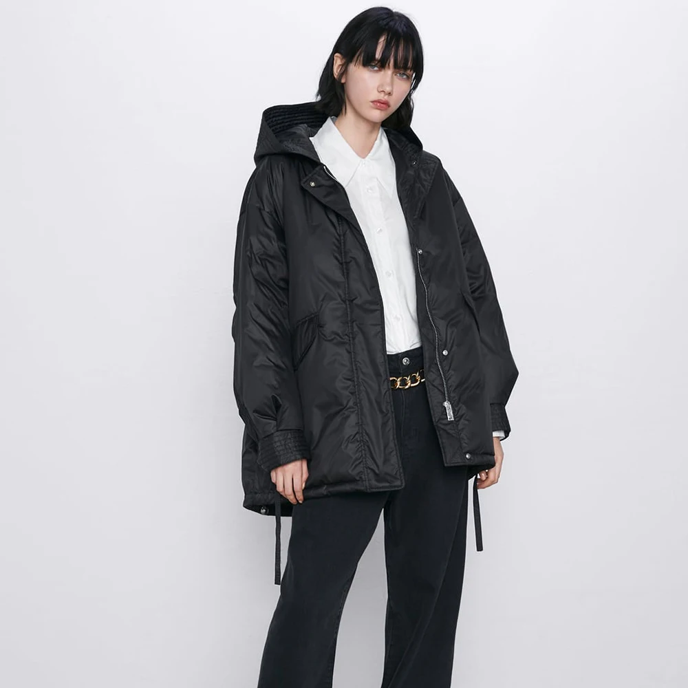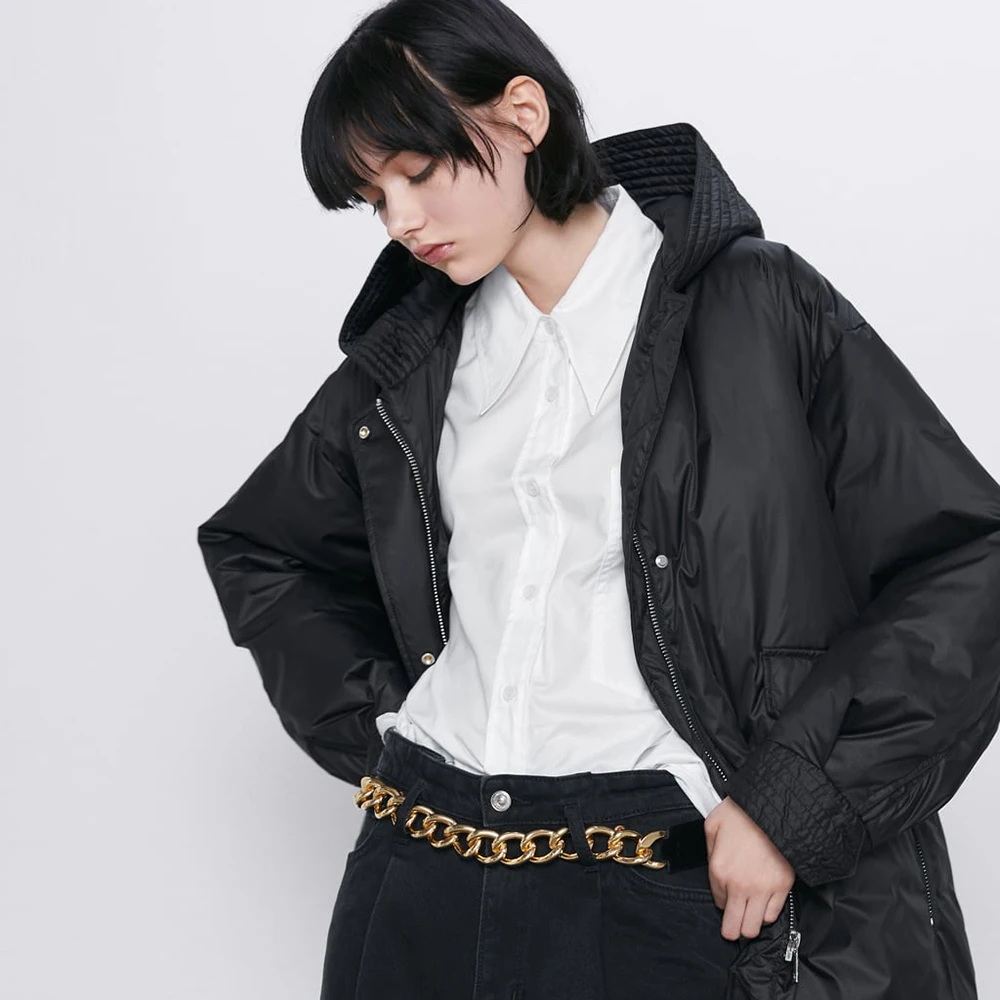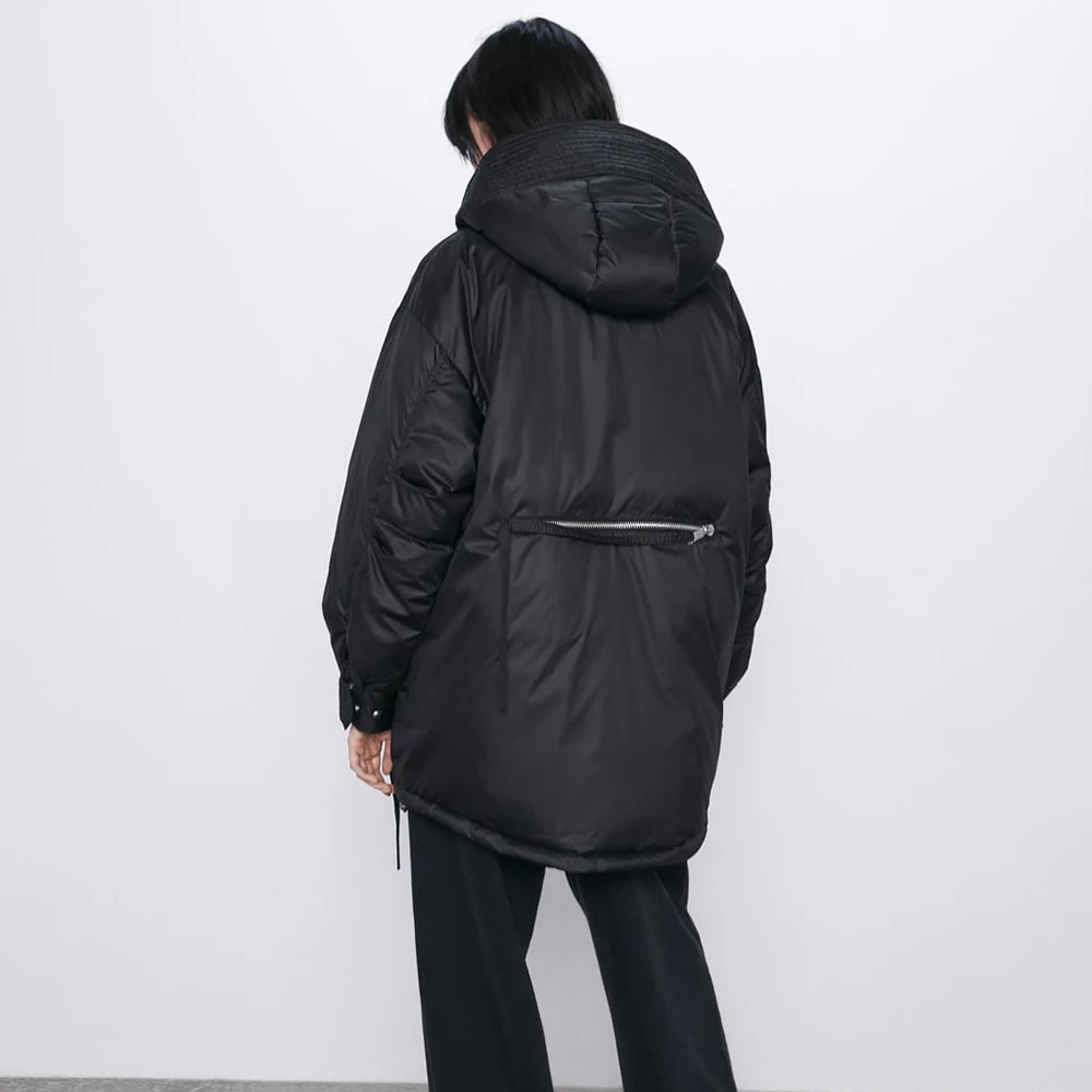 Hot Offer ZA Down Jacket 2019 Fashion Ladies Winter Black Long Hooded Loose Version of Winter Casual Long Cot